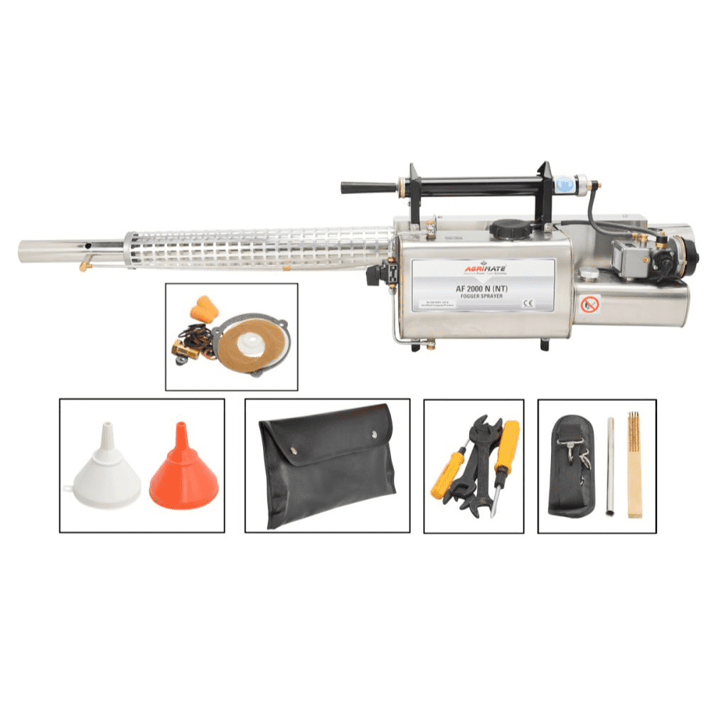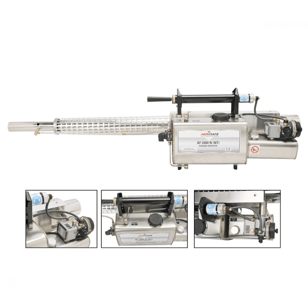 This AGRIMATE Heavy Duty Thermal Fogging Machine AF2000N-NT is specially designed for use in the urban environment. It dispenses oil based or water based insecticides, fungicides, germicides, disinfectants, odor control and other chemical products, effectively and economically.