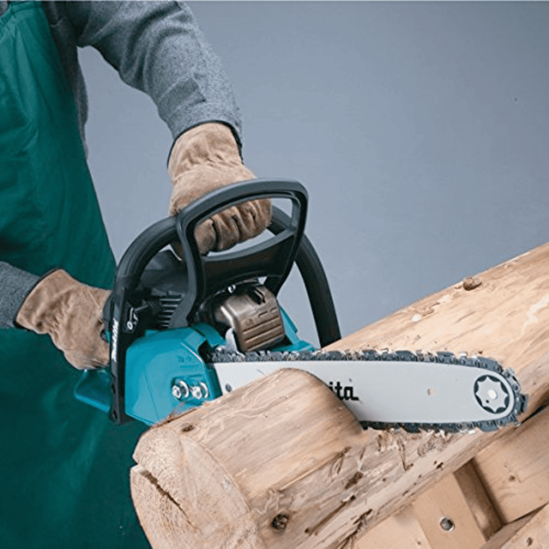 Touch & Go Start: Makita engines are famous for their reliability. The “Easy Start” mechanism ensures the machine fires up with a gentle pull, unlike cheaper saws that require you to wrestle with the starter cord.