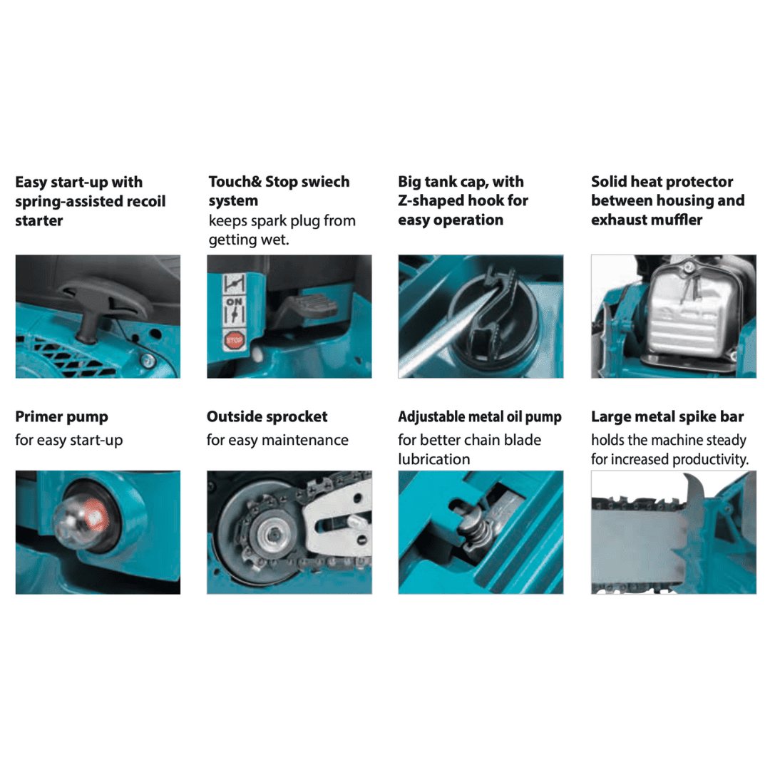 MAKITA Chainsaw 16 Inch 1350 Watt 1.9 HP with Powerful Petrol Engine