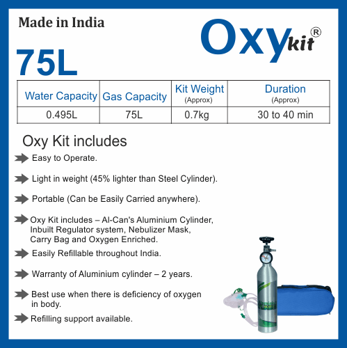 - Gas Content : OxyKit comprising of 75 Litres of Pure Natural Oxygen
