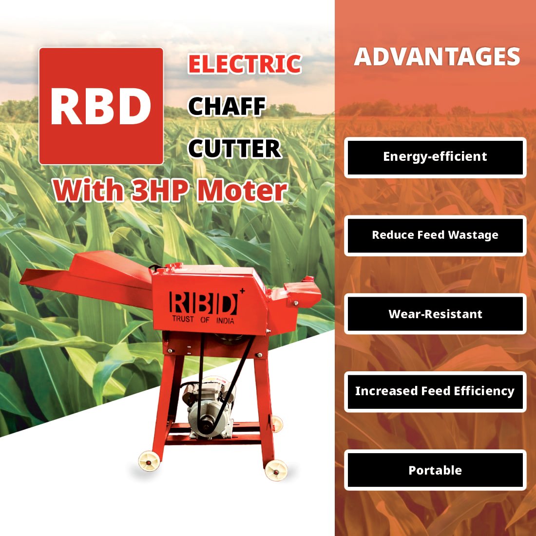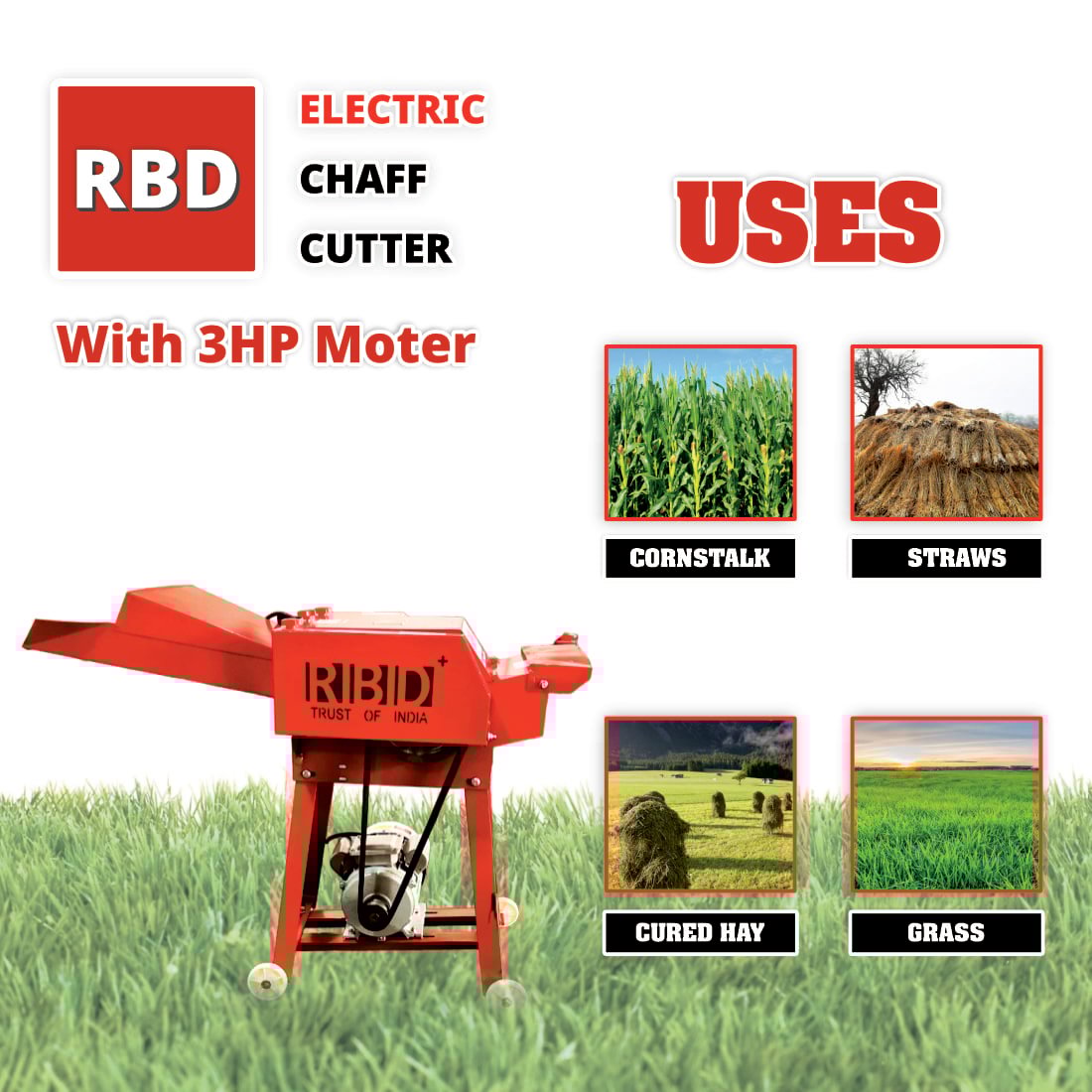 Effortless Fodder Cutting with the RBD 4 Blade 3 HP Chaff Cutter with Motor