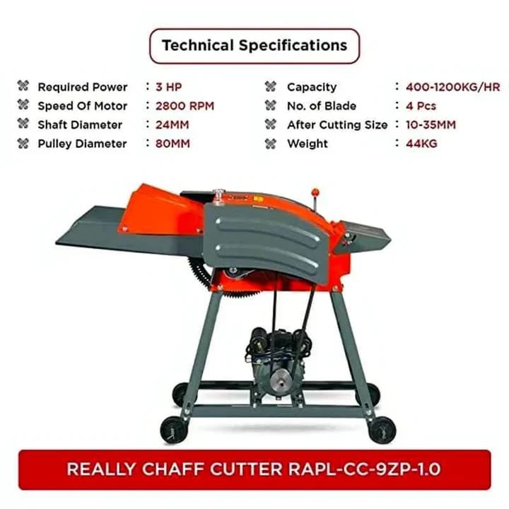 Introducing the REALLY 3 HP Chaff Cutter designed to enhance the efficiency of fodder processing for farmers and agricultural businesses. With its robust design and impressive capabilities, this chaff cutter simplifies the process of cutting fodder, offering convenience, reliability, and exceptional performance.